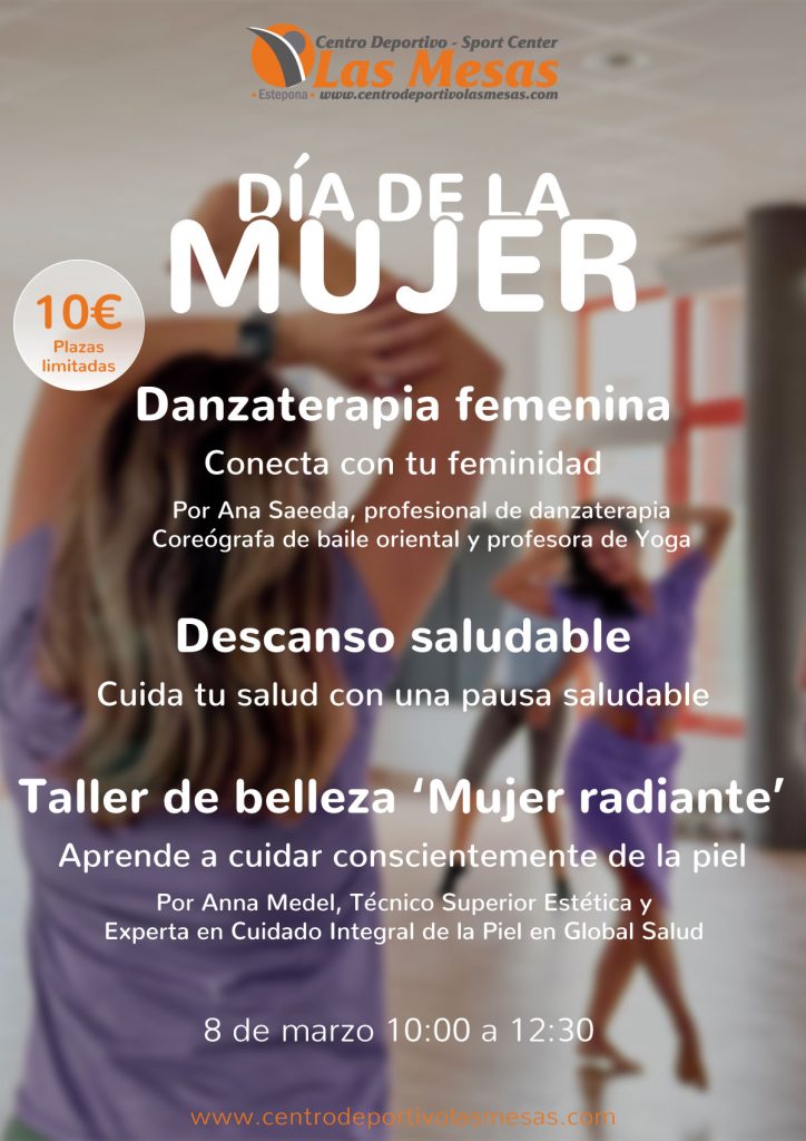 Este 8 de marzo en Las Mesas queremos celebrar el Día Internacional de la Mujer de una forma especial, significativa y llena de salud. Por eso ese día, de 10:00 a 12:30, hemos preparado una mañana única pensada para que las mujeres se encuentren, se cuiden y disfruten de una experiencia diferente en nuestro Centro Deportivo. Con plazas limitadas y un precio de 10€, este evento es una oportunidad que no querrás perderte.